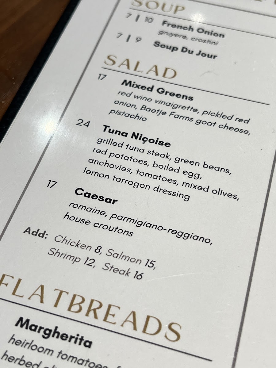 What I love is the balance. One minute you’re eyeing a classic you know you can count on, the next you’re tempted by something seasonal that feels a bit more adventurous. Even the sides feel thoughtfully chosen, not just fillers on the plate. Whether you’re stopping in for a relaxed lunch or settling in for a cozy dinner, the variety keeps things interesting without feeling overwhelming, and every section of the menu invites you to slow down and actually enjoy choosing what’s next.